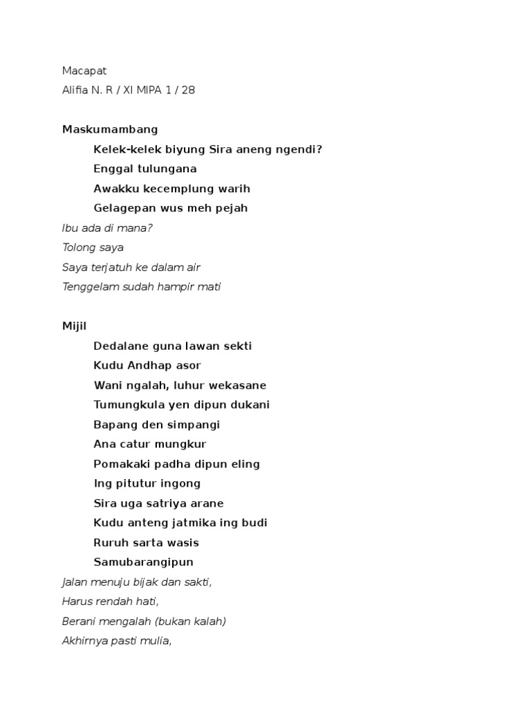 Kumpulan Lengkap Contoh Tembang Macapat Beserta Penjelasan Dan