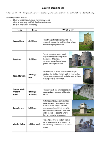 Design Your Own Castle Teaching Resources