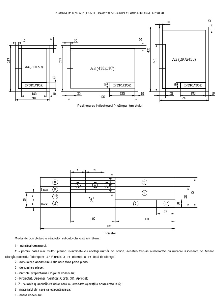 Formate A3 Si A4 Poziţionarea Indicatorului In Campul Formatului Completare Indicator