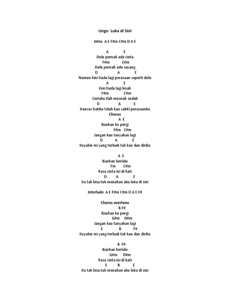 Chord Kunci Gitar Dan Lirik Lagu Luka Disini Ungu Dulu Pernah