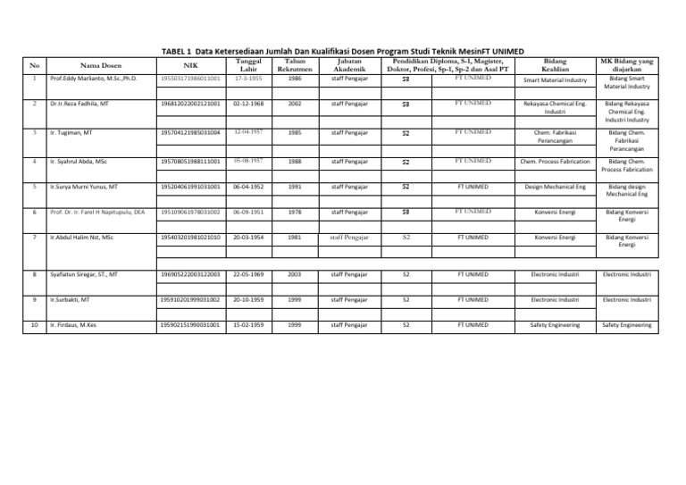 Dosen S1 Teknik Mesin Ft Unimed
