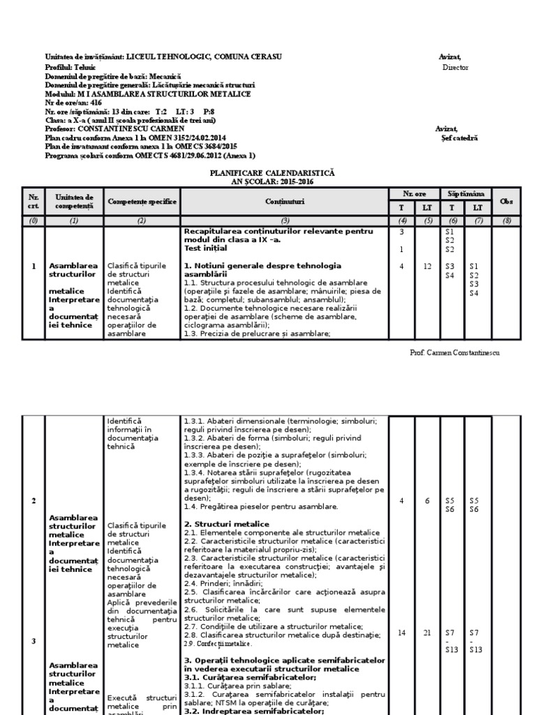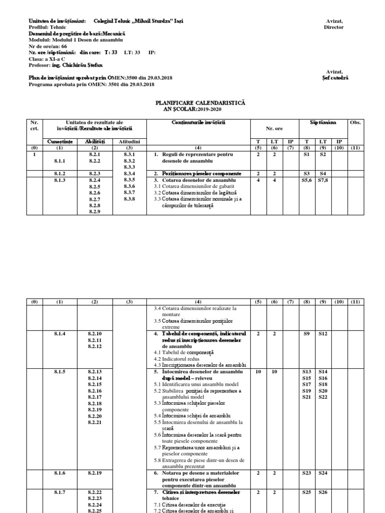 Planificare Calendaristica M I Desen Tehnic De Constructii Doc
