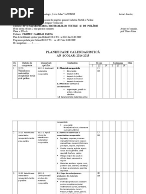 Planificare Calendaristică An Scolar 2014 2015