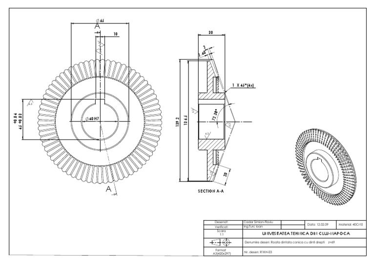 Roata Dintata Conica Desen De Executie
