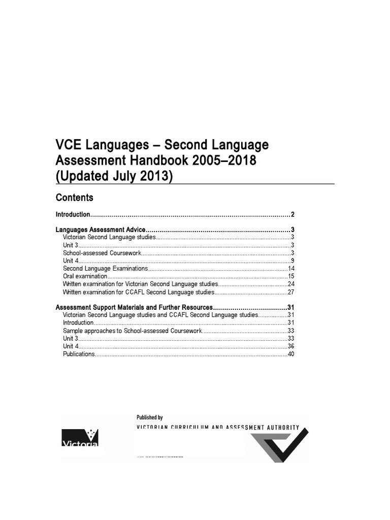 Vce Languages Second Language Assessment Handbook 2005 2018